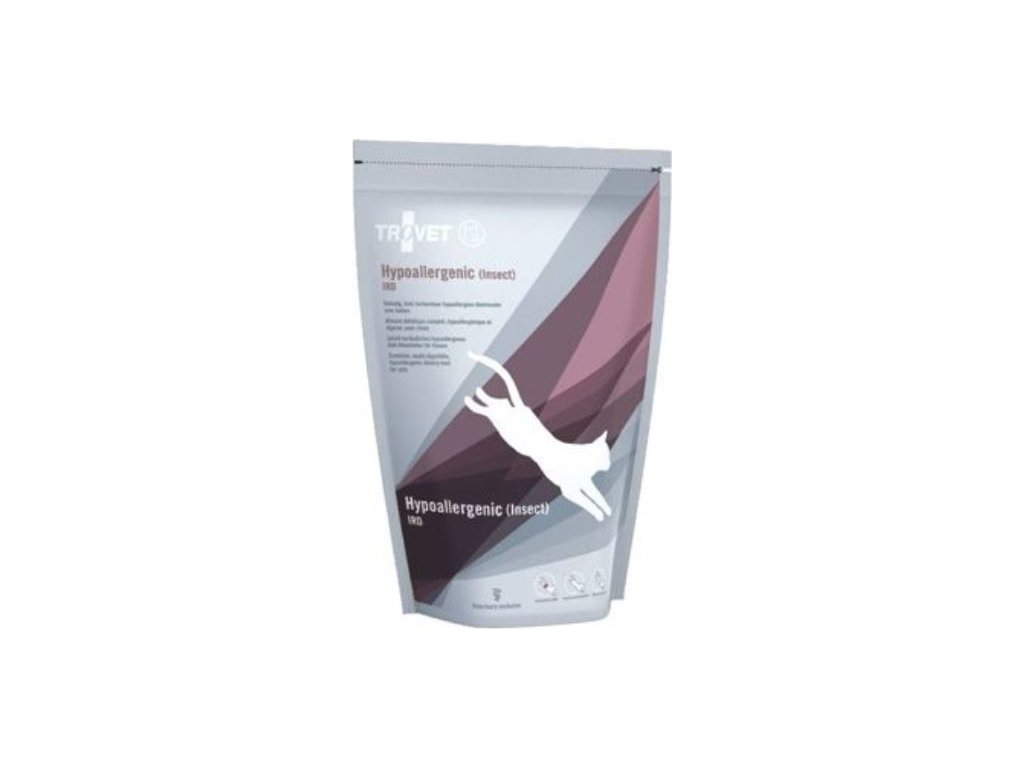 Trovet IRD pro kočky s diagnózou potravní alergie, potravní intolerance. Jeden zdroj živočišné bílkoviny (larvy bráněnky Hermetia Illucens ) a jeden zdroj uhlohydrátů (rýže). Změna stravy za hypoalergenní dietu napomáhá ke snížení doprovodných příznaků jako je škrábání, drbání a kousání se.