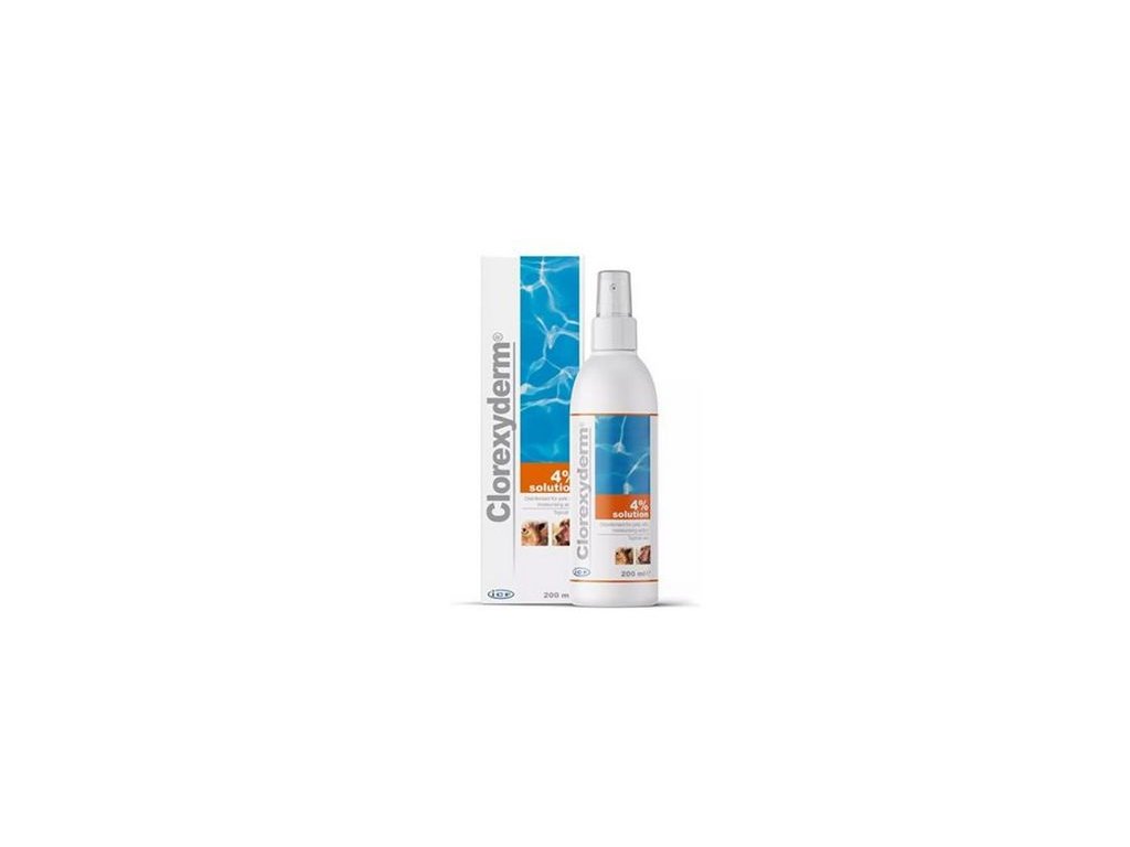 Clorexyderm roztok 4% je dezinfekční přípravek pro psy a kočky, bohatý na hydratační a změkčující složky, který nevyžaduje oplachování po aplikaci, je účinný proti mikroorganismům citlivým na chlorhexidin. Jeho tekutá, nemastná formule umožňuje dezinfikovat i rozsáhlé plochy kůže a provádět dezinfekční ošetření v krátkých časových intervalech.