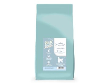 Bezobilné krmivo Best Breeder Grain Free pro dospělé psy s lososem, pstruhem, batáty a chřestem. Vysoký podíl masové složky. Vynikající poměr cena/kvalita.