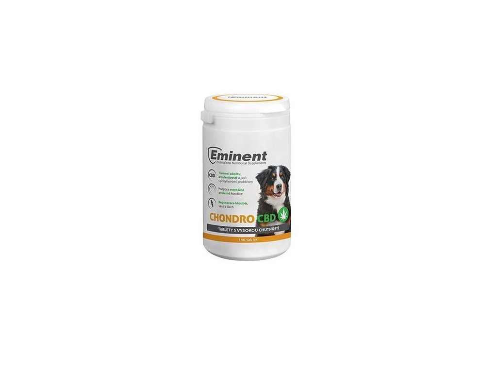 Eminent Chondro CBD je speciálně vytvořený výživový doplněk ve formě tablet, navržený tak, aby podporoval zdraví kloubních chrupavek vašeho psa, podporoval regeneraci buněk a zmírňoval zánět, který je často spojen s kloubními onemocněními.