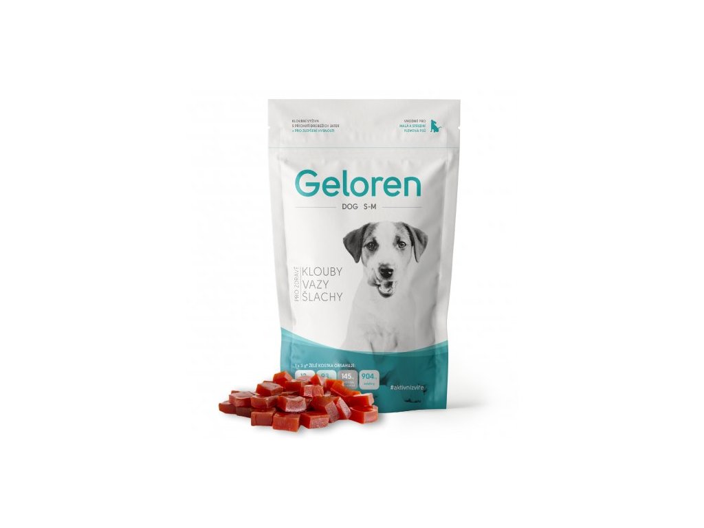 Geloren DOG S/M kloubní výživa pro malá a střední plemena. Vhodné pro dospělé a starší psy při akutních pohybových problémech i jako prevence pro mladé rostoucí jedince ve vývoji. Hlavní účinnou látkou je speciálně upravená kyselina hyaluronová (lubrikuje a promazává kloub, tlumí nárazy a zastavuje degradaci chrupavky), chondroitin sulfát, hydrolyzovaný kolagen a želatina. S příchutí drůbežích jater, takže pejskům nejen pomáhá, ale i chutná.