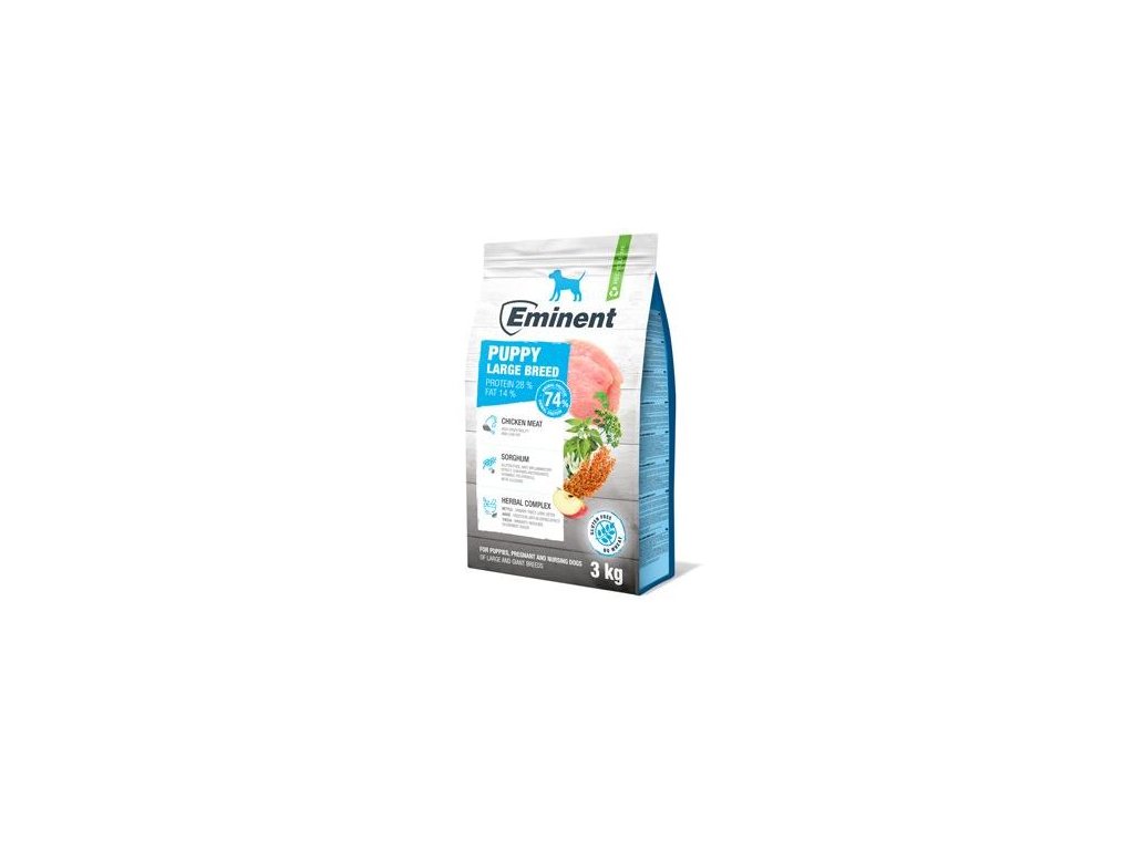 Krmivo pro štěňata, březí a kojící feny velkých a obřích plemen Eminent. Krmivo splňuje nároky na výživu rychle rostoucích štěňat velkých plemen. Základem receptury, která zajišťuje optimální růst svalové hmoty, je kvalitní lehce stravitelné kuřecí maso.